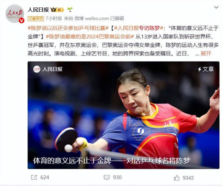 东谈主民日报|陈梦说以后还会干涉乒乓球比赛,东谈主民日报专访陈梦.2026