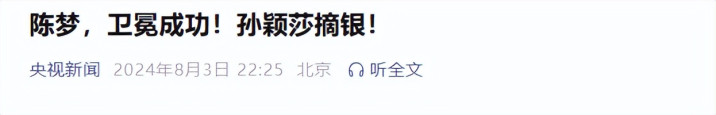 央视新闻|陈梦,卫冕凯旋!孙颖莎摘银!2024
