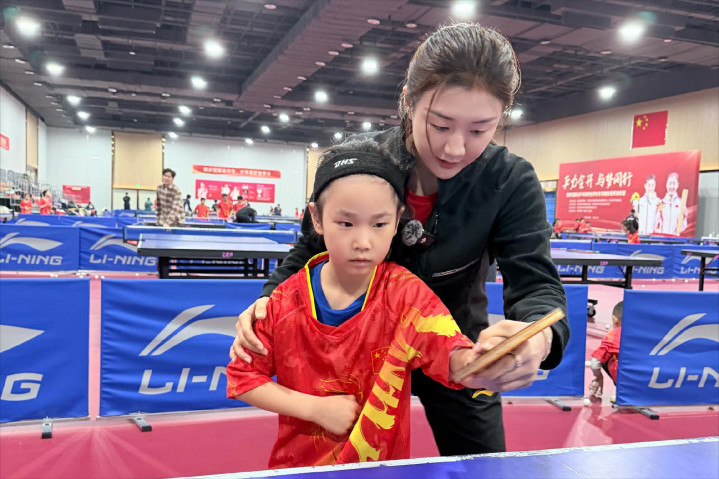 陈梦亲临现场化身“梦指导”,手把手为小选手改良作为、训诲妙技。