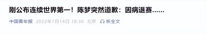 中国后生报|刚公布链接世界第一!陈梦倏得谈歉:因病退赛......2022