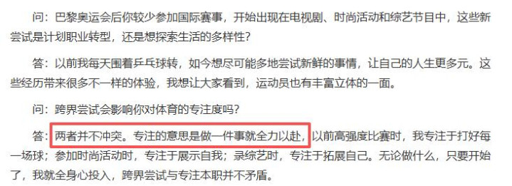 除了赛场效力,东谈主民日报专访还聚焦了外界特别关注的话题——陈梦的跨界探索。