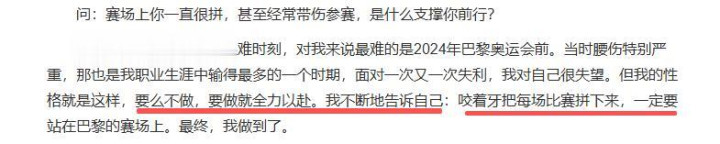 专访中被问及撑合手我方带伤前行的力量,陈梦坦言: