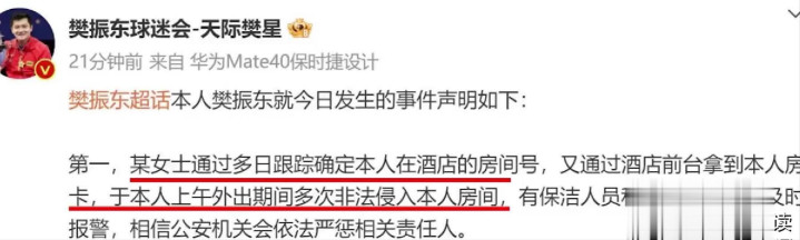 更让他崩溃的是私东说念主活命被透顶滋扰,2023年4月,又名生分女子通过追踪拿到他的酒店房卡,屡次违规闯入他的房间,出动他的物品,他报警维权,却只换来心扉上难以祛除的猬缩,致使家东说念主也遭无端搅扰,连外出买东西齐被跟拍围堵。