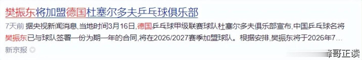 3.新京报:樊振东将加盟德国杜塞尔多夫乒乓球俱乐部