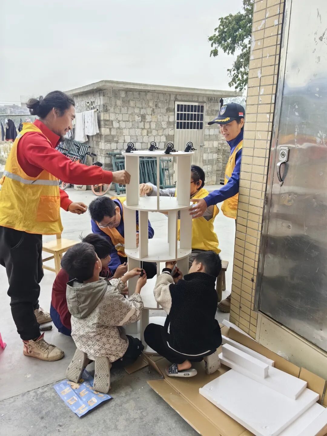 本日上昼,志愿者们分组捎带物质,走进一个个屯子。在孩子们或期待或憨涩的办法中,志愿者们轻轻放下礼物,就怕开动了缓和的互动。簇新的板材与器用被取出,志愿者与孩子一同蹲在地上,仔细对照图纸,拼接、拧紧螺丝,共同将洒落的木板拼装成清爽的小书架。在这个经过中,孩子们也从首先的生涩,渐渐变为主动参与,递器用、扶木板,Dafabet眼中精通着专注与期待。一方小小的书架,不仅让册本有了整洁的归宿,更在趋承最先的经过中,传递了关爱与作陪的温度,悄然筑起沿途通往学问寰宇的桥梁。