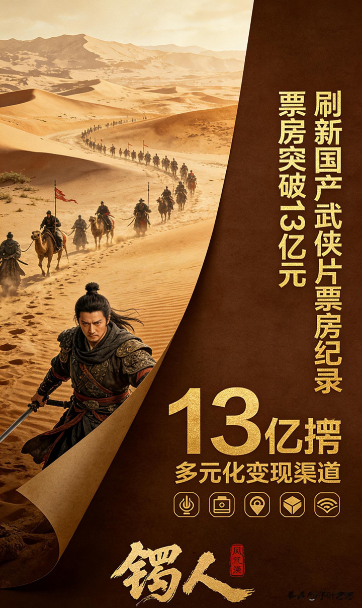 《镖东说念主:风起大漠》内地票房突破13亿元,刷新国产武侠片票房记载。编剧俞白眉公开示意影片已基本回本,这场曾被预判“必亏”的豪赌,最终以口碑逆袭、交易落地收官,为低迷已久的武侠题材带来全新启示。