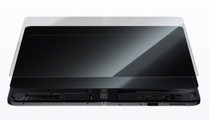 OPPO Find N6这次主打的"无感折痕屏",主要归功于两大中枢硬件的冲破。其一是新一代钛合金苍穹搭钮,其二是革命的苍穹记念玻璃,两者共同构筑了极其平整的夸耀基础。