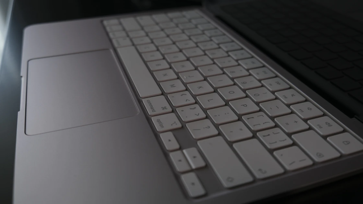 我成心对比了手里的 MacBook Air,它的键盘、脚垫都和机身作念了同色处罚。
