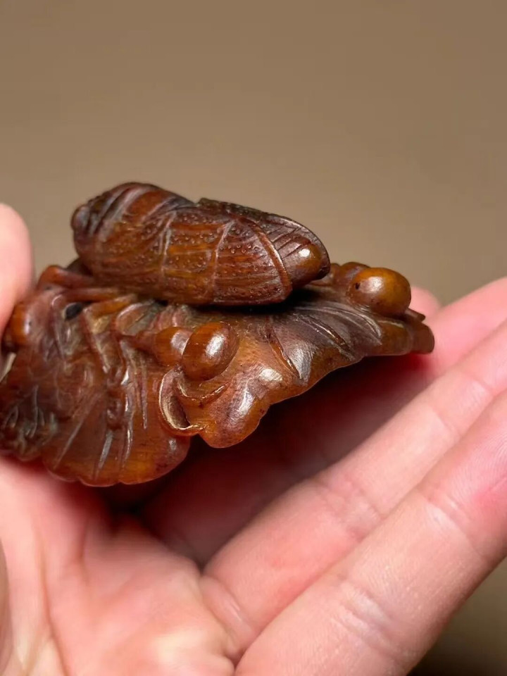 翻过后头来看,竹丝纹理极度昭着,dafa大发手机版app根根分明莫得交叉,和树脂仿品天渊之别。雕工亦然粗中带细,整只知了看起来很灵动,dafa大发手机版app嗅觉是活物在大声鸣叫,十分逼真。