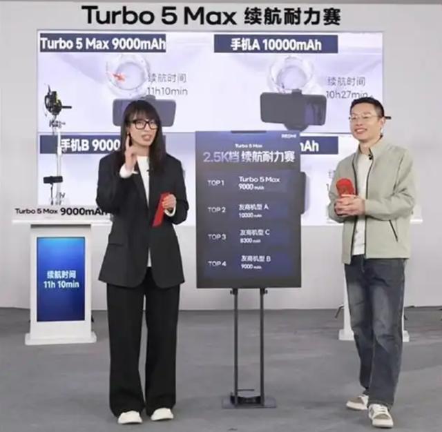 在REDMI Turbo5 Max发布时,小米进行了续航实测直播。在这场续航耐力赛直播中,REDMI Turbo5 Max捏续了11小时10分钟,比友商10000mAh机型的续航还长43分钟。