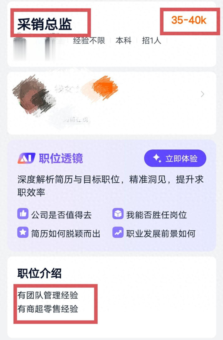 今天刷到北京一家大型连锁超市的采销总监岗,月薪35k-40k,职位先容浅陋到离谱:有团队连续训导,有商超零卖训导。