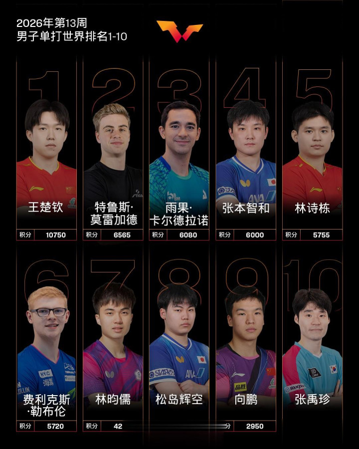 其他的倒无所谓,最主要的是林诗栋和樊振东,还有向鹏皆莫得进入这场比赛,这也就代表着,宇宙名次前十的顶尖高东谈主中,国乒男队有且仅有王楚钦一根独苗在进入比赛。