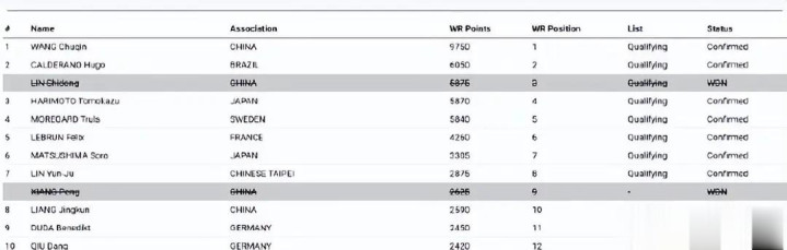除了林诗栋缺席本次宇宙杯比赛除外,中国选手中,向鹏的参赛状况也和林诗栋雷同,樊振东和朱雨玲也先后缺席本次宇宙杯,目下中国依然有四名选手缺席了。