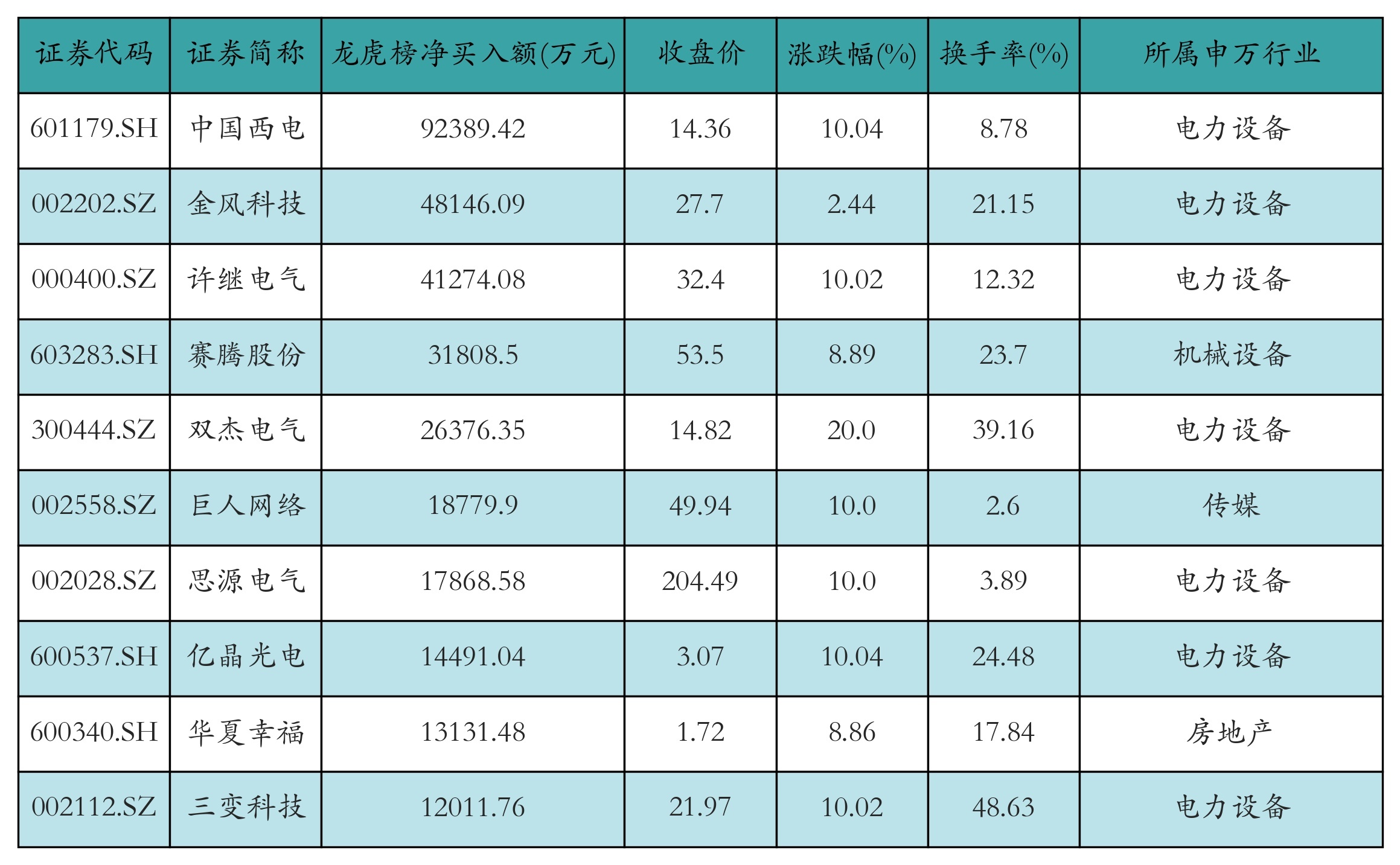 昨日龙虎榜生意部净买入额前10细目见下表: