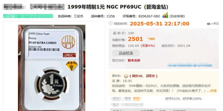 公共看上图,这是一枚1999年的牡丹1元硬币,何况亦然精制币大发官方网站。这枚硬币是69分的评级币,它在2025年的5月份网拍上拍出了2601元的高价。公共家里如果有像这么的精制币的话,保藏价钱高涨的一经比拟多的。