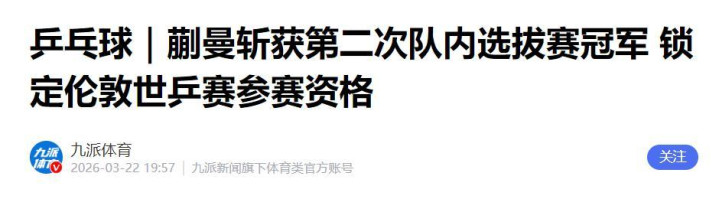 九派体育——乒乓球|蒯曼斩获第二次队内弃取赛冠军 锁定伦敦世乒赛参赛经验