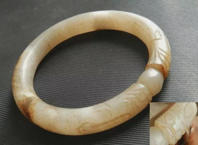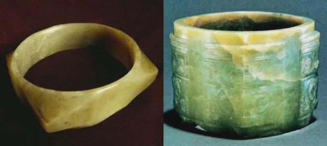 这个时期的玉镯为扁圆形,材料多为玉石。有学者以为玉璧和玉琮[cong]动作手镯的原型相比可靠。