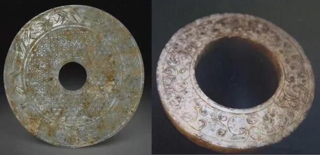 ▲左图为玉璧,壁大于孔;右图为玉瑗,孔大于壁。