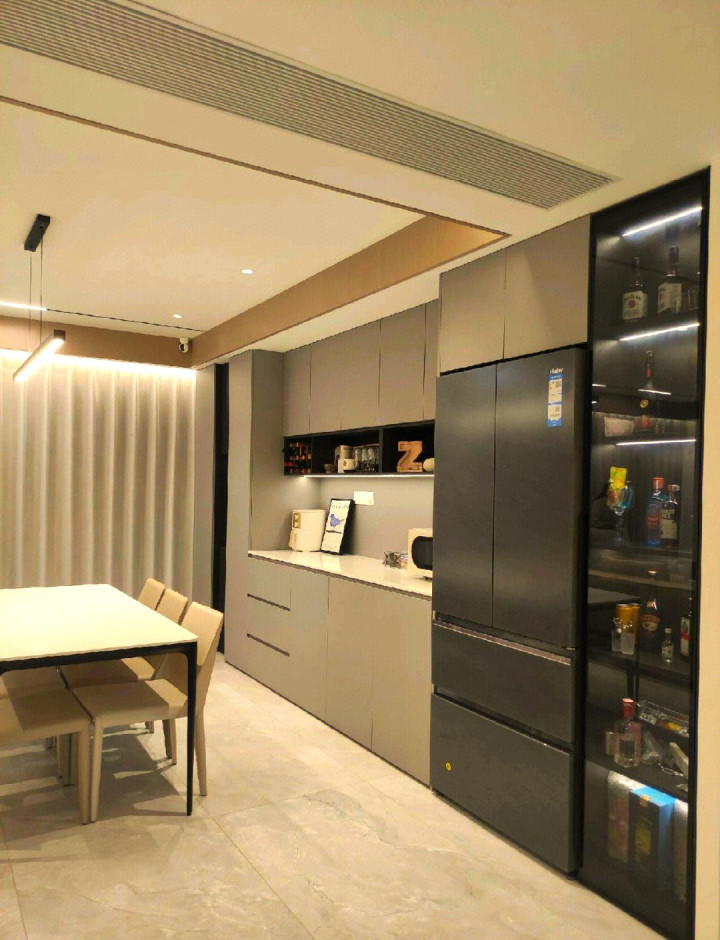 这是现时零差评的黄金位置。作念全屋定制的时代,胜利让联想师把雪柜嵌进餐边柜。选底部散热的镶嵌式雪柜,严丝合缝,颜值拉满 。以后吃完饭,顺遂把剩菜塞雪柜,动线比放厨房还顺。环节是——厨房蓦地多出至少1平米的操作空间,能多作念一组高柜,大发官方网站蒸箱烤箱洗碗机全塞进去,不香吗?