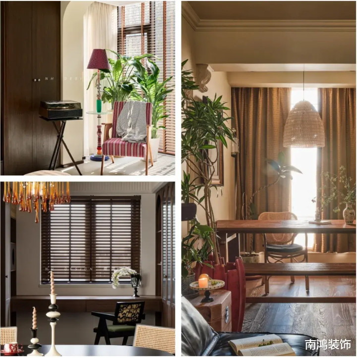 软装:实木、藤编、棉麻、布艺、丝绒、黄铜、玻璃等