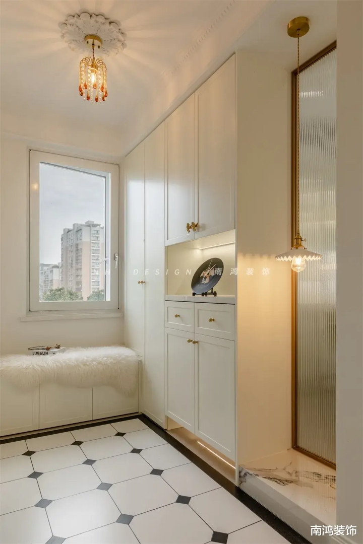 它的硬装基底不复杂,关联词比拟依赖法式雕花线条以及软装细节,去衬托居室举座的氛围感。