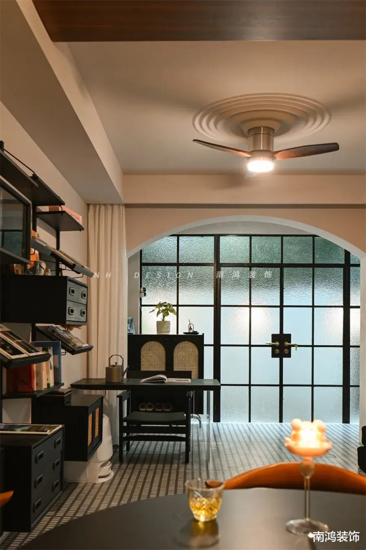 ④弧形门洞、花砖、百叶窗、相沿玻璃门齐是南洋风的中枢元素。