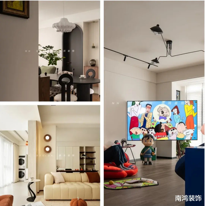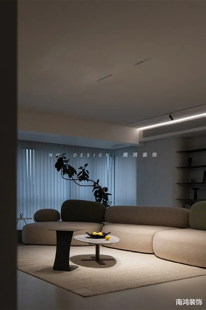 ①空间结构与软装居品多使用圆弧造型,匡助柔化室内线条;